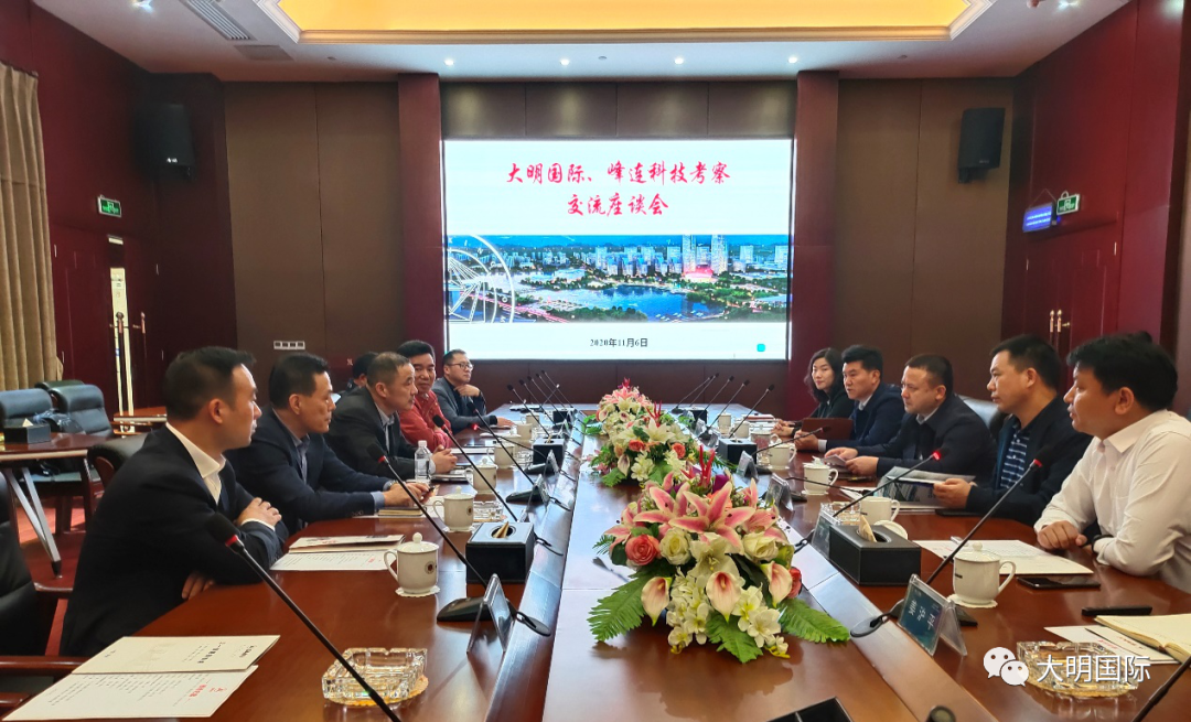 会议期间,周克明主席介绍了大明集团的发展现状、差异化服务模式及未来发展规划。易小刚总裁对周克明主席一行的到来表示欢迎,对大明在制造细分领域龙头地位及运营模式表示赞赏。双方均表示将进一步加强交流沟通,实现互利合作。