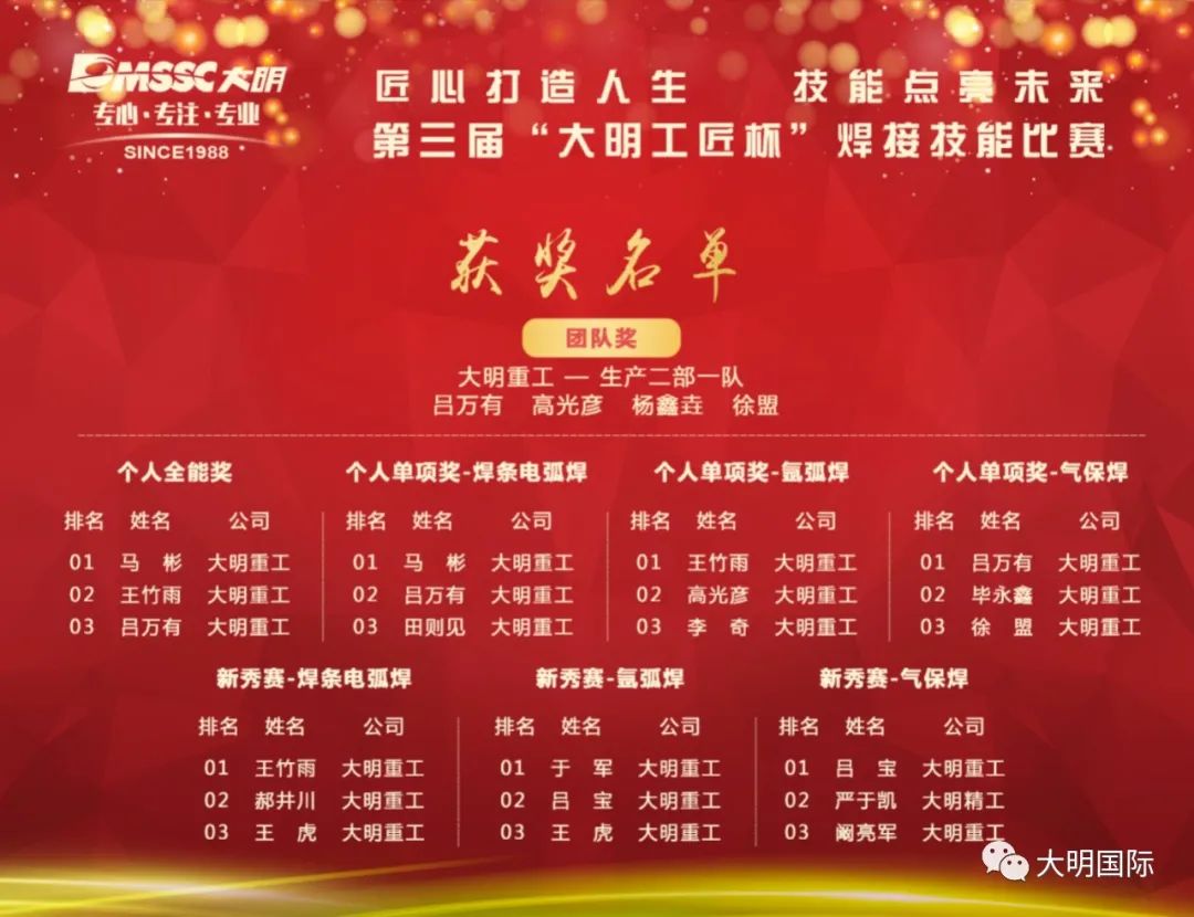 备受瞩目的“大明杯”生产作业大比武暨第三届焊接技能大赛自9月18日拉开帷幕后,经过裁判组为期两个月的严格评判,获奖名单终于揭晓。
