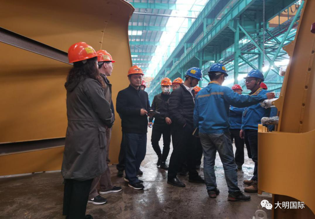 11月12日,HSS上海分公司总经理卫丰,徐工矿业机械有限公司质量部长黄华强、技术中心工艺研究所所长李柏松,中国检验认证集团李明辉,中建材海外部部长高泓玮一行来访大明重工。大明重工技术部总工程师王毅民、生产一部部长严春、生产一部部长袁鹰、质保部部长蔡军等热情接待。