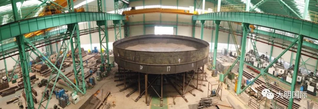此订单主要涉及17台浓密机,共850吨容器板,3500吨加工量。材质为双相钢2205、碳钢345R。整个流程需经过切割、刨边、圈圆、折弯、焊接、总装、打包、出口等。订单量大、工序繁琐、交期紧张等都为这次的项目增加了难度。大明靖江加工中心结合集团资源采购渠道和自身的加工配套能力等优势,为客户提供从原材料到加工服务、物流运输的“一站式”解决方案。