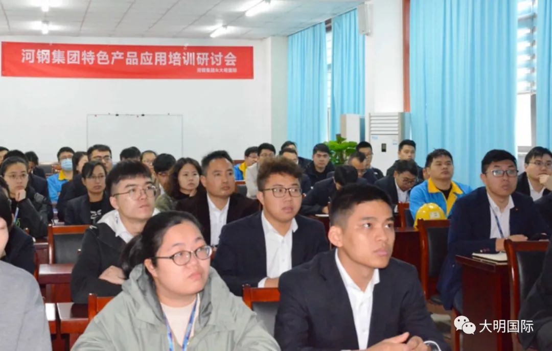本次培训主要针对河钢集团宽厚板、热轧板以及冷轧板产品进行了深入介绍。河钢专家围绕板材的性能、用途、开发应用、销售技巧等进行了分享和交流,切实提高了大明员工的综合业务能力,并拓宽了业务思路。通过此次培训使大明学员深入了解了河钢集团各基地的产品优势及特色,有利于更好的为客户选材、用材提供服务,从而帮助客户优化成本,满足客户对材料升级的需求。同时,还有助于大明业务人员更好的将材料与加工结合起来,发挥大明加工服务能力,增强与客户之间的粘性。