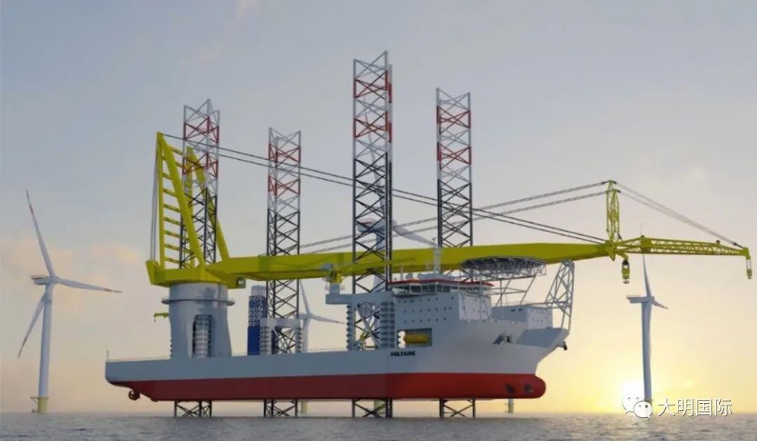 N966自升式风电安装船,船名为“Voltaire”号,设计用于运输、重吊和安装海上风力发电机,中转部件和基座,与现有的自升式安装船相比,具有更佳的运营限制,重吊能力超过了3000吨,作业深度大约为80米,负荷大约为1.4万吨。