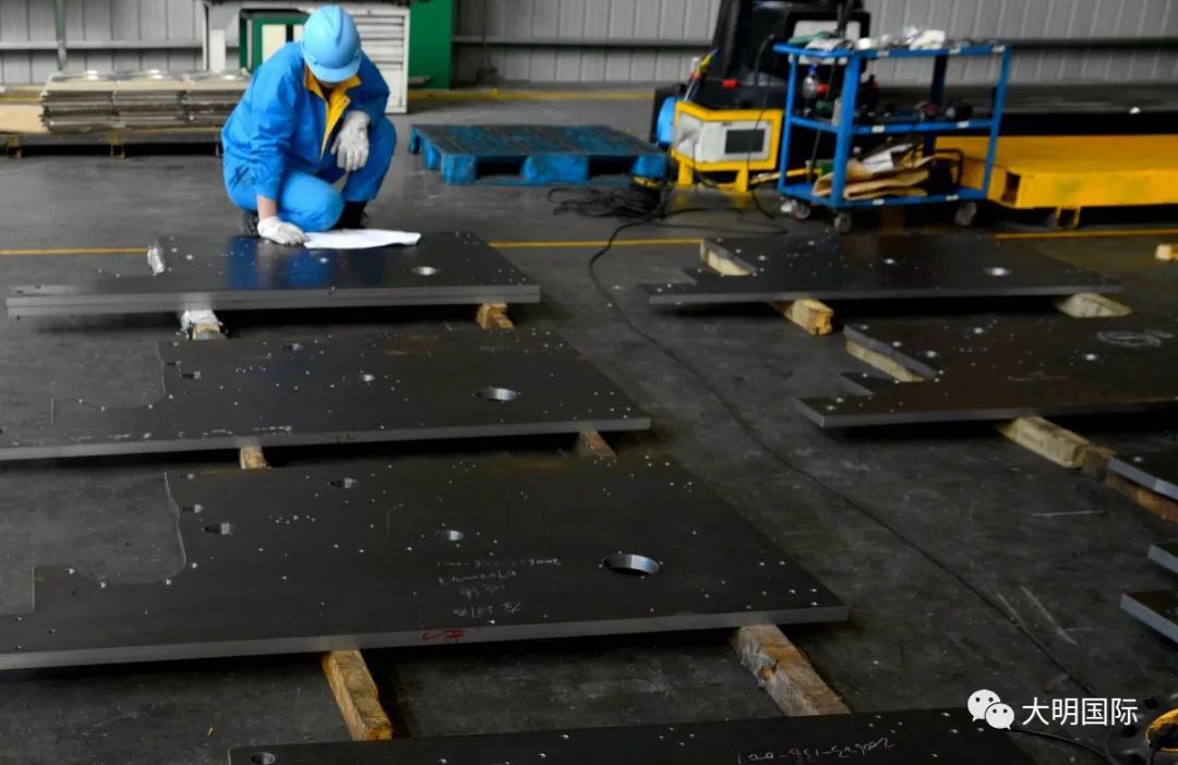 近日,一批用于印染设备制造的水平轧车墙板订单,从江苏大明机加工现场发往客户,受到了客户好评。此批服务于浙江某印染设备企业的产品共40多套,选用厚度30mm的碳钢Q345B材料,加工涉及火焰切割、矫平、机加工等工序。客户对于产品的尺寸、形状、平坦度,孔径的精度等质量均提出严格的要求。江苏大明设计、机加工技术、现场生产、品质检测等部门通过研讨论证,制定了专业方案,多部门共同协作,加班加点,既确保了加工品质,同时又紧密把控10天的交货进度,最终提前完成订单。