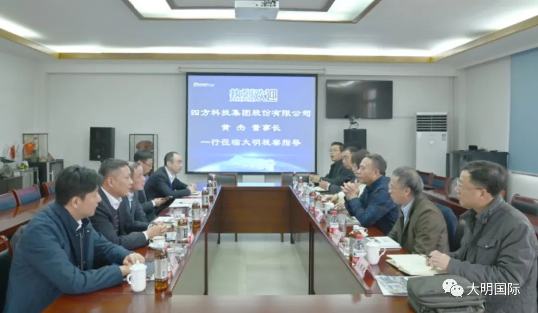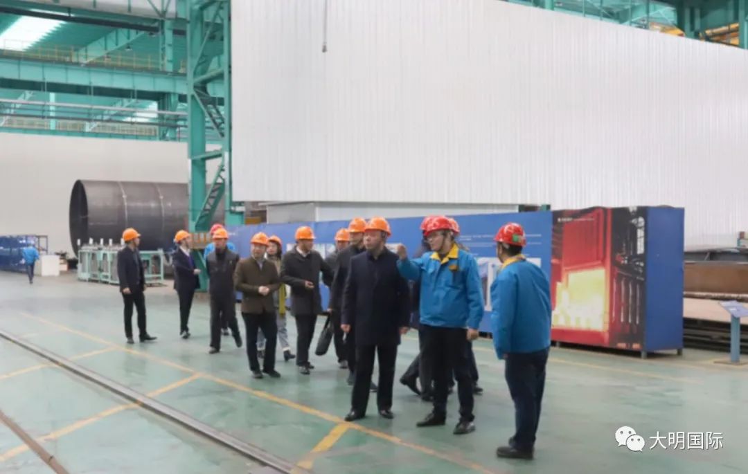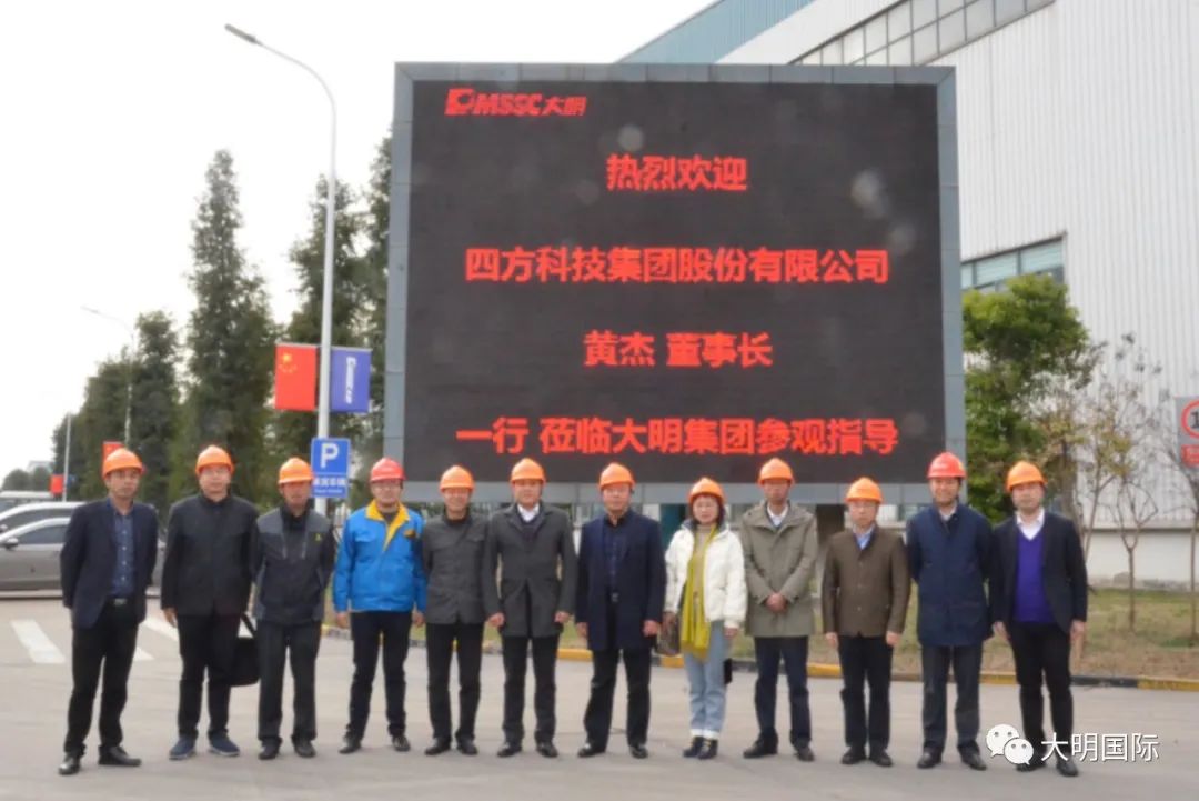 黄杰董事长一行先后参观了大明靖江加工中心、大明重工、江苏大明、大明精工,并进行了座谈交流。座谈中,周克明主席详细介绍了大明从材料到加工、制造配套的“一站式”服务模式及后期规划。黄杰董事长十分认可大明的经营模式和服务理念,并介绍了四方科技集团的相关情况。双方均表示,后期将加强合作,携手发挥各自优势,为终端客户提供优质、可靠的产品和服务。