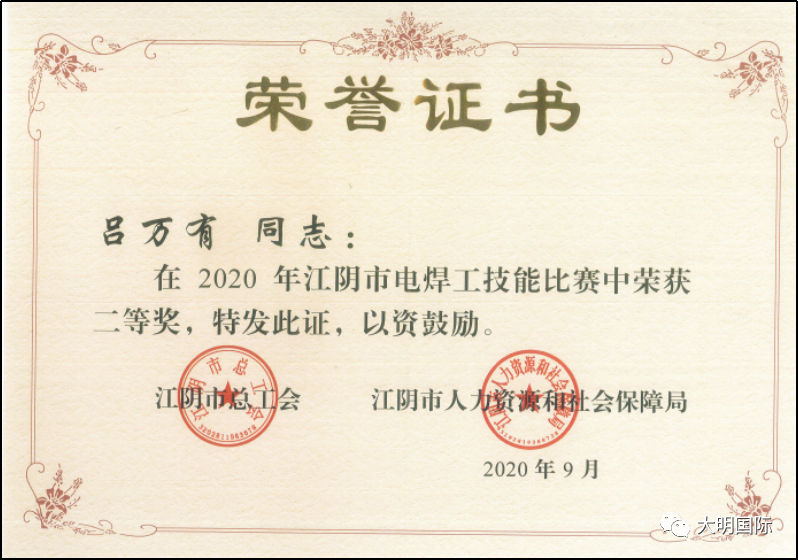近日,江阴市总工会和人社局等多部门联合举办了以“当好主力军,建功新征程”为主题的江阴市职工职业技能大赛,大明重工积极参与,其中结构工程事业部吕万有获得了电焊工技能比赛二等奖,生产管理部黄敏获得行车工技能比赛三等奖,有效带动了公司职业素养、技能素质和创新能力的提升。