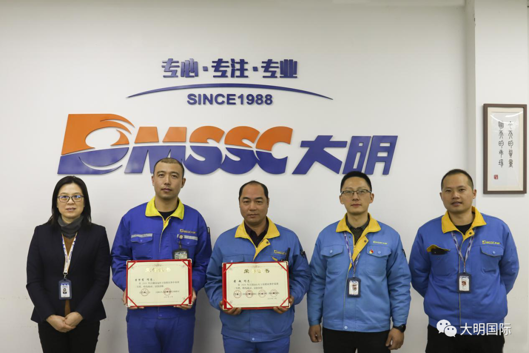 大明重工集团管理部部长陈婉芳同获奖员工合影
