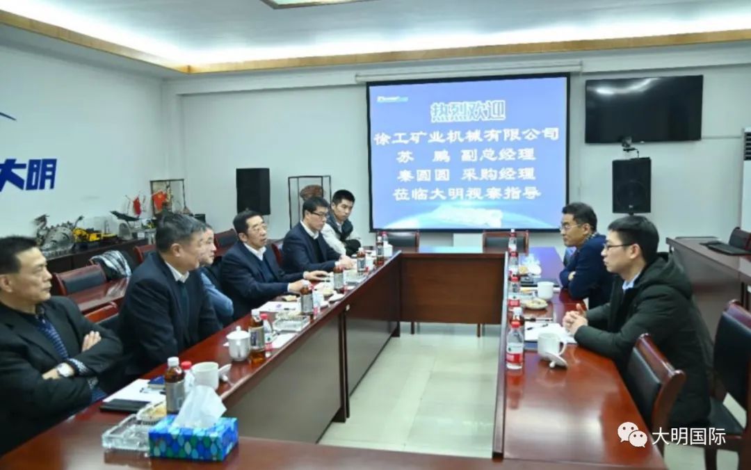 苏鹏副总经理一行首先参观了大明靖江基地,他对大明在金属加工领域的服务能力和独具优势的配套服务模式表示十分赞赏。在大明集团总部的座谈中,双方就前期合作情况进行了回顾,苏鹏副总经理对大明重工为徐工绞卡、矿车、大吨位挖掘机等提供的高端制造配套服务表示肯定,对于大明的加工实力、发展速度及质量管控等也表示十分认可。双方还就后期项目合作规划进行了深入探讨,表示将更加紧密地进行合作,充分发挥各自优势,为终端客户提供更好的产品和服务。